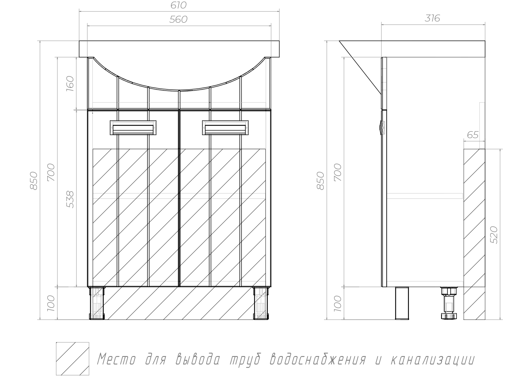 - Тумба под раковину Vigo Diana 60 белая глянцевая с дверцами